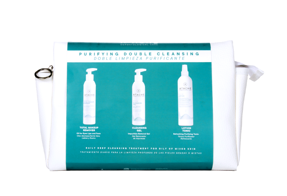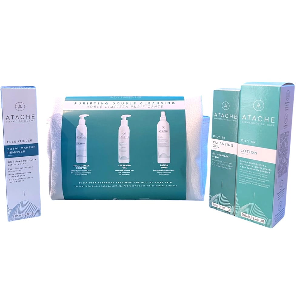 Zestaw stworzony z myślą o skutecznym oczyszczaniu i pielęgnacji skóry tłustej, mieszanej i skłonnej do niedoskonałości. Zawiera trzy profesjonalne produkty marki Atache, które regulują wydzielanie sebum, dokładnie oczyszczają pory i zapewniają uczucie świeżości. W skład zestawu wchodzi tonik, żel oczyszczający oraz olejek do demakijażu. Dodatkowo do zestawu dołączona jest elegancka biała kosmetyczka gratis.